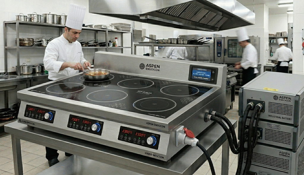 Aspen Enggicon offers advanced Hybrid Induction Cookers designed for both industrial applications and household backup cooking, powered by Direct AC 220V input and integrated lithium-ion battery support for uninterrupted performance.